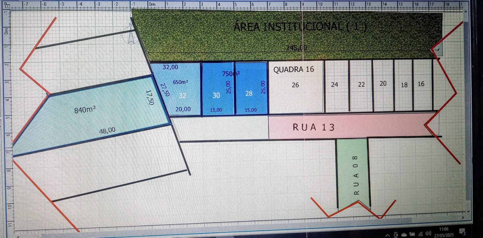 ÁREA TOTAL 750 + 650 = 1400m²